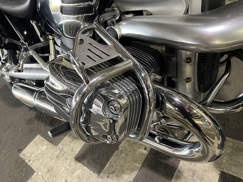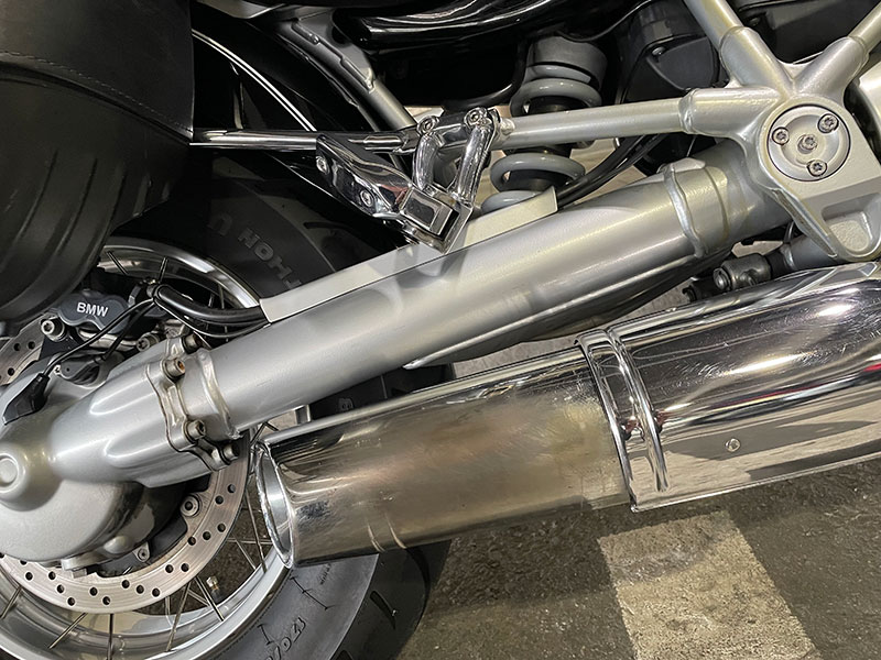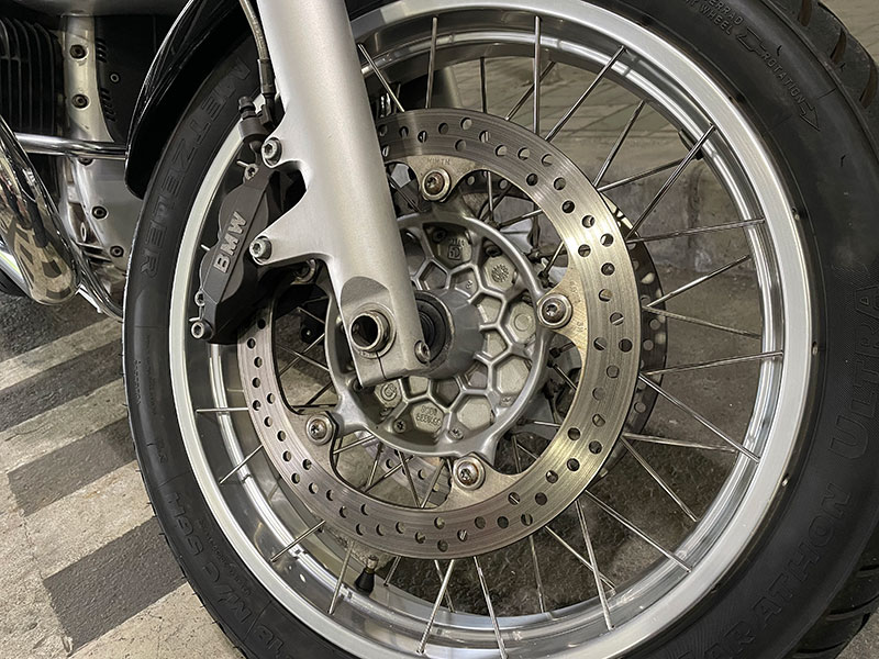 BMW R1200C で鬼門なのがメッキ類のじょうたいなのですが、特に前後のホイールがボロボロの状態な車両も多い中、BMW R1200C(ブラック)BB号は2004年式の後期型なので、前後のホイールはメッキではなく当時のGSと同等のアルマイト?仕様!
