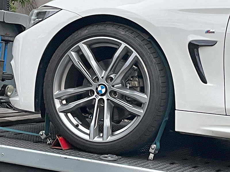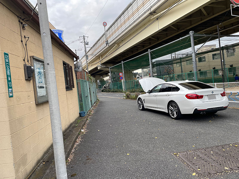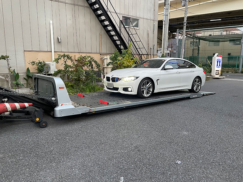 この後、レッカー車に同乗し越谷のBMW正規ディーラーまで移動しましたが、到着したのは午後6時過ぎ。取り急ぎ愛車BMW F36 420i グランクーペ Mスポーツ 3代目まゆ毛くん(シタまゆ)は、そのまま入庫となり最寄りの駅までタクシーで移動して電車で帰ってきました。