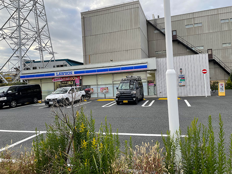 ギリギリ首都高の入口には侵入せずにそのまま側道に戻ったものの、まずもって首都高下の片道1車線の側道だったので直ぐに車を停める事もできません(汗)なんとか信号を一つ超えたた先にコンビニの看板を目視にて確認!